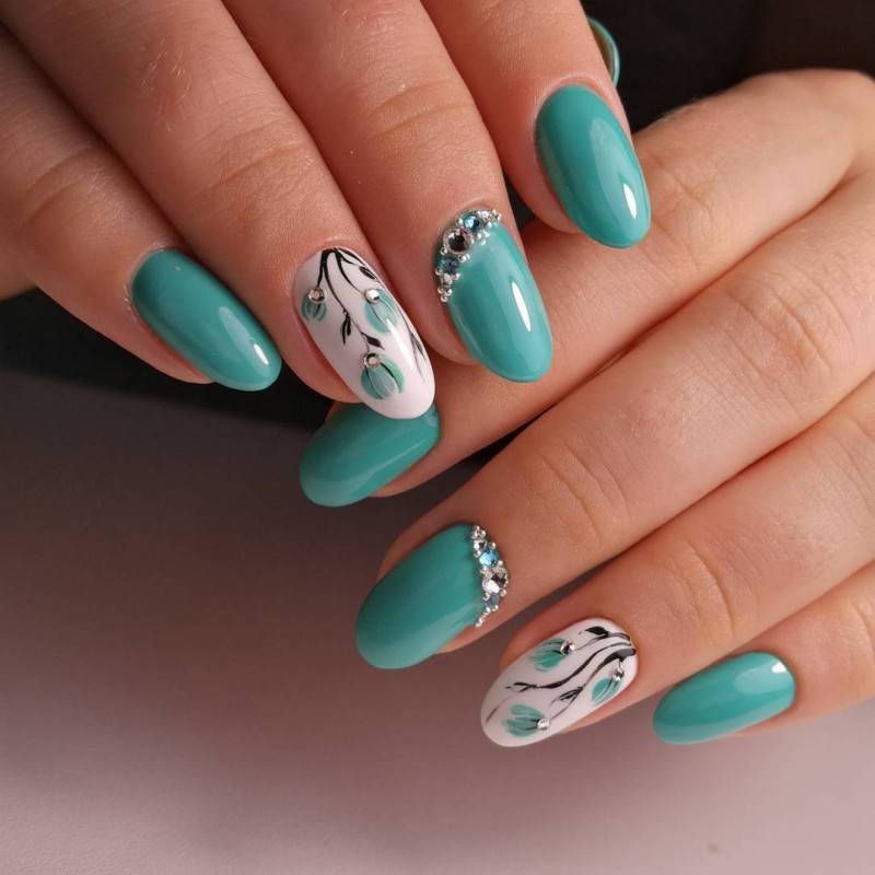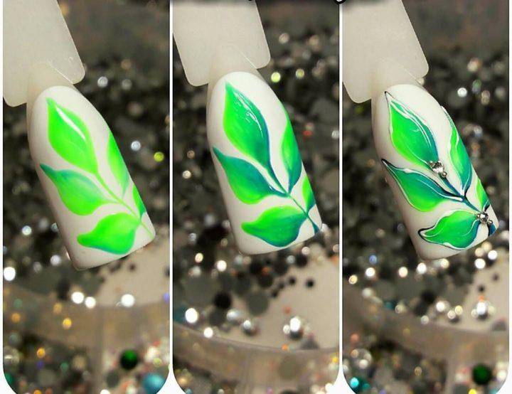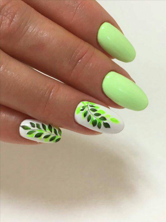 Весной все расцветает и распускается, так пусть же тоже самое происходит и на ваших ноготках. На длинных ногтях зеленые стебли и листочки будут особенно красиво выделятся. Их стоит рисовать зеленым, белым, салатовым, изумрудным или болотным цветом. Ведь именно с помощью таких цветов, можно сделать рисунок по-настоящему реалистичным.
