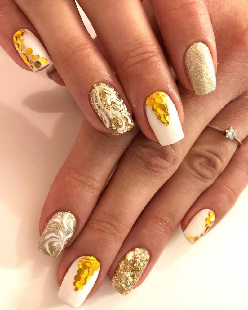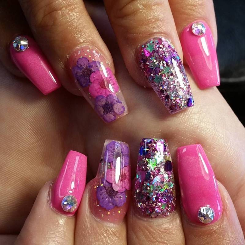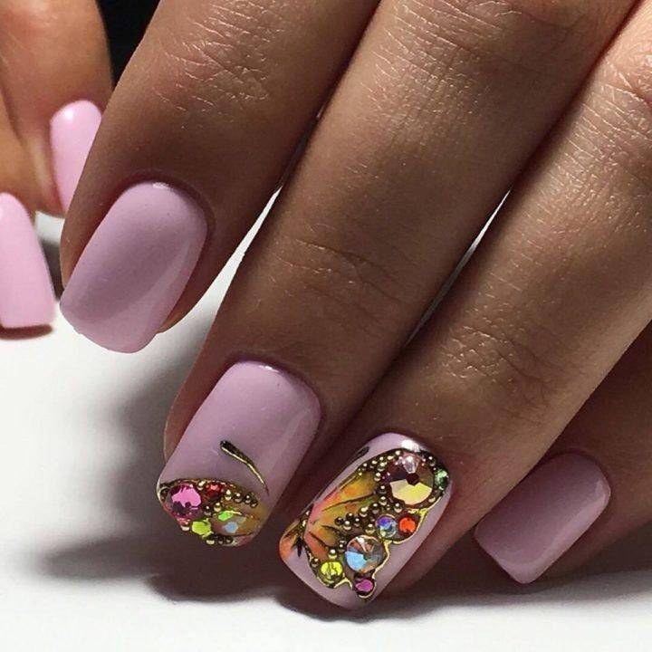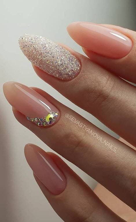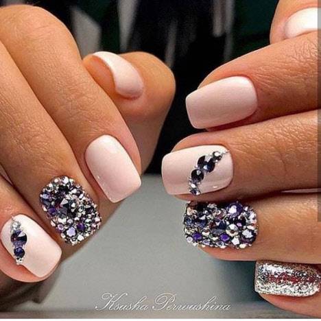 Маникюр с блестками и камнями: варианты весна 2020