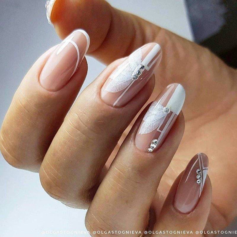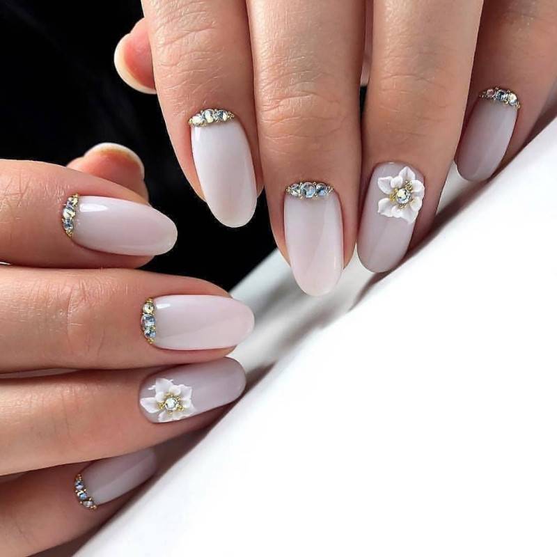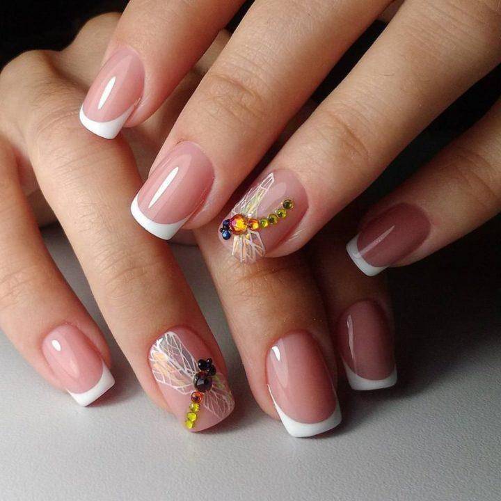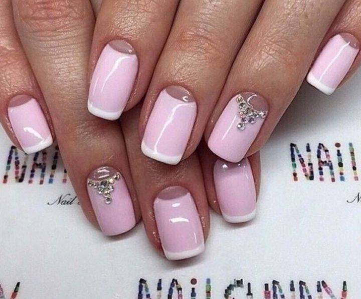 Весенний лунный маникюр также как и френч может быть дополнен всевозможными украшениями и элементами декора.