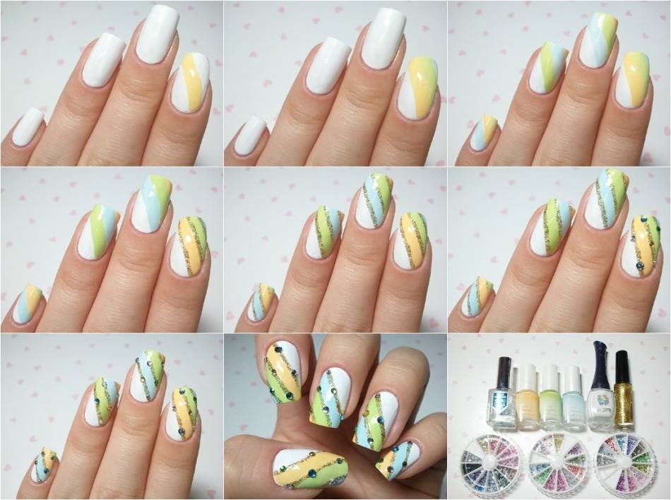 Весенний маникюр с линиями и полосками — фото 2020