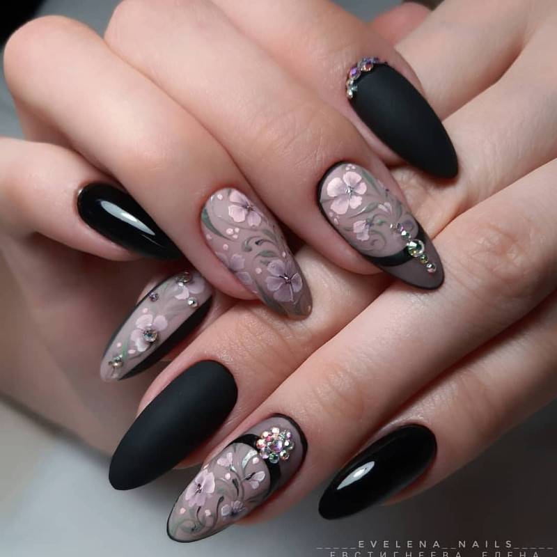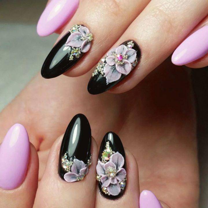 Стразы всегда выглядят стильно и модно, а на длинных ногтях будут смотреться просто шикарно. Самая крутая идея — черные ногти в сочетании с маленьким стразами на каждом пальце. Этот дизайн будет выглядеть одновременно элегантно и дерзко.
