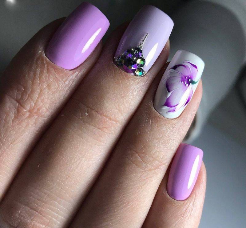 Волшебный фиолетовый маникюр превосходно подойдет на среднюю длину ногтей, а также на весенний сезон. Фиолетовый яркий, насыщенный цвет, но совершенно не вульгарный как красный. Он имеет более элегантный тон, а также олицетворяет жизненную силу.