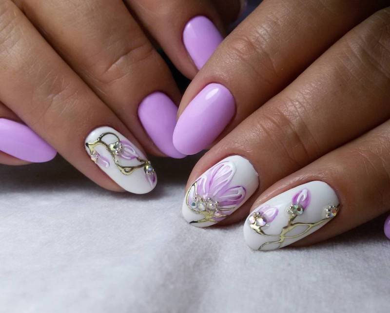 История из жизни: «Недавно я пришла к своему мастеру Марине, которая предложила мне массу интересных идей, связанных с весной. Фиолетовый цвет с маленькими стразами, белый с серебристыми веточками меня очень удивил и порадовал. Выходя из её салона, я вдыхала ароматы роз, которые росли у неё под окнами. Навстречу ко мне спешила знакомая, которая хотела сделать гель-лак покрытие. Я ей сказала, что можно открыть сайт о том, где есть очень много идей с ногтевым безумием и большим выбором у нашего мастера лаков. Мы с ней попрощались, а вечером на телефон пришла фотография с этим прелестным дизайном и покрытием, который она ей сделала. Это был невероятно нежный, розовый, разбавленный мелкими блестками и белым цветом рисунок. Ну какая же она всё-таки умница и великолепно делает свою работу. Как часто вы меняете мастеров? Дружите ли с ними? Я люблю в свой обеденный перерыв сидеть у своего мастера и пить чай, а вы?»