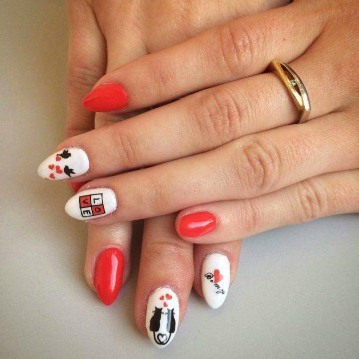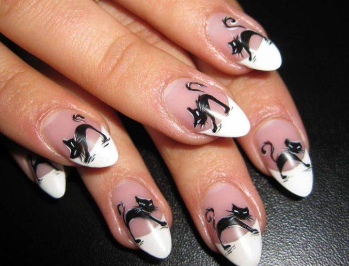 Весенняя пора часто вызывает у нас ассоциации с началом гулянья кошек. Мартовские коты будут отлично выглядеть на ваших ноготках в разнообразных интерпретациях умелых мастеров. Самыми популярными вариантами считаются черные кошки и белый лак или наоборот. Но здесь уже дело вкуса, так что можно подбирать и использовать любую цветовую гамму.