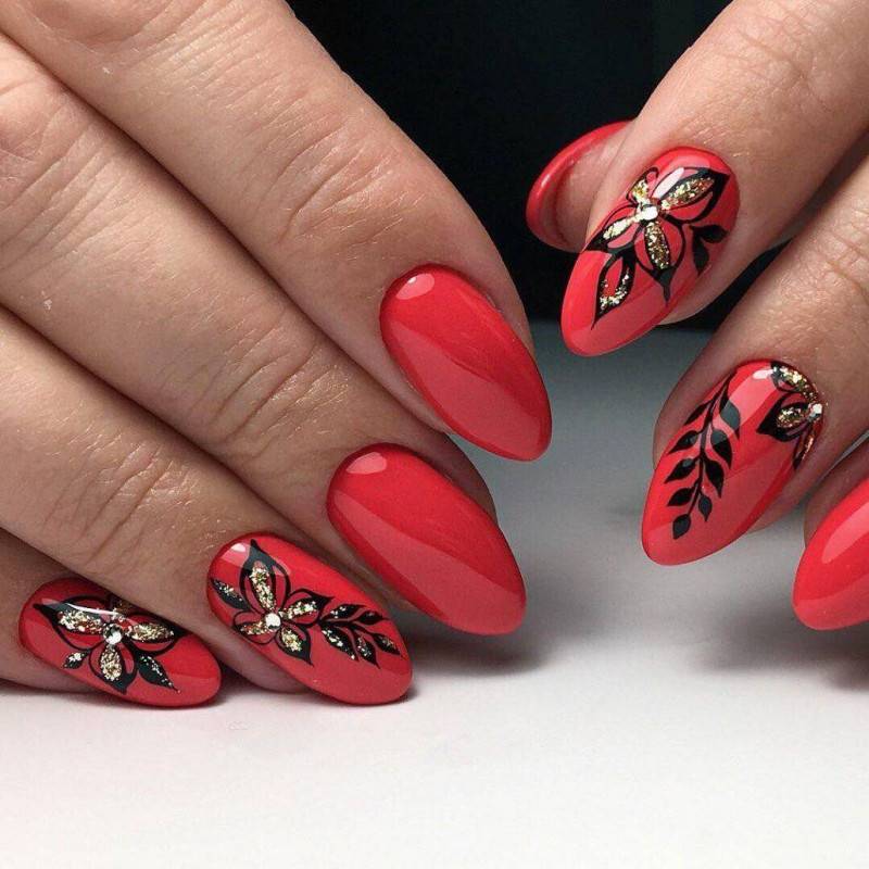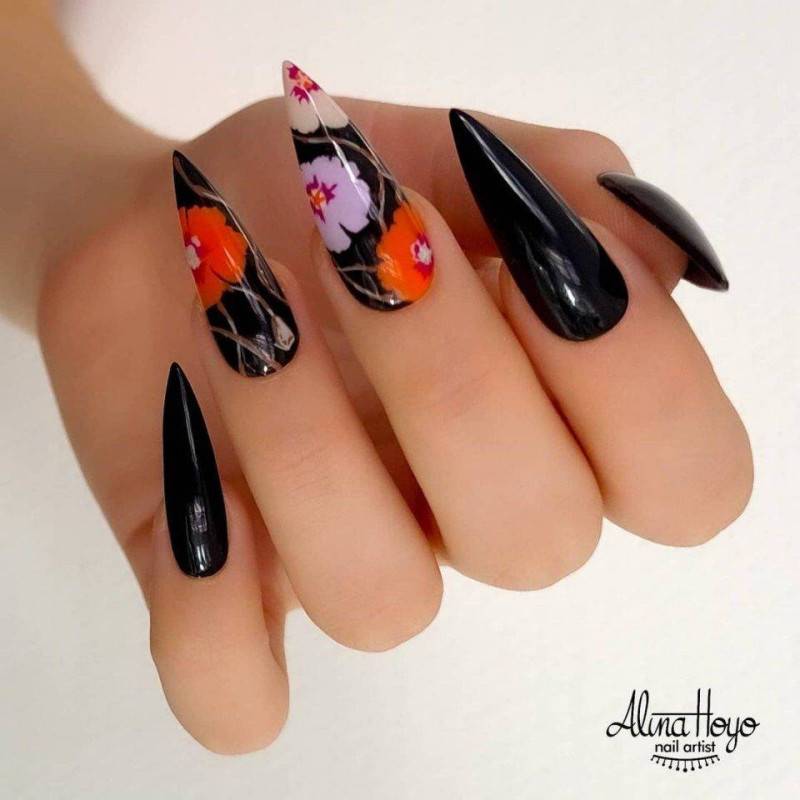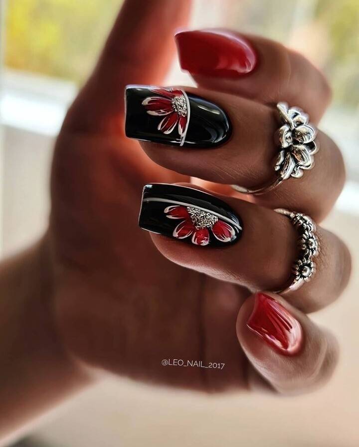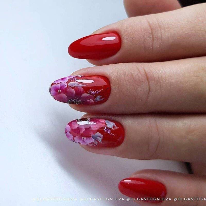 Цветочные изображения на ногтях всегда женственно, мило и нежно смотрится. При этом, как мы уже говорили, совсем не обязательно ограничиваться светлыми и лаконичными оттенками для их создания. Вдохновляйтесь нашими идеями и воплощайте в реальность свои желания. Весна – это чудесное время для экспериментов!