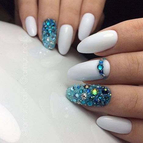 - Маникю с блестками и камнями