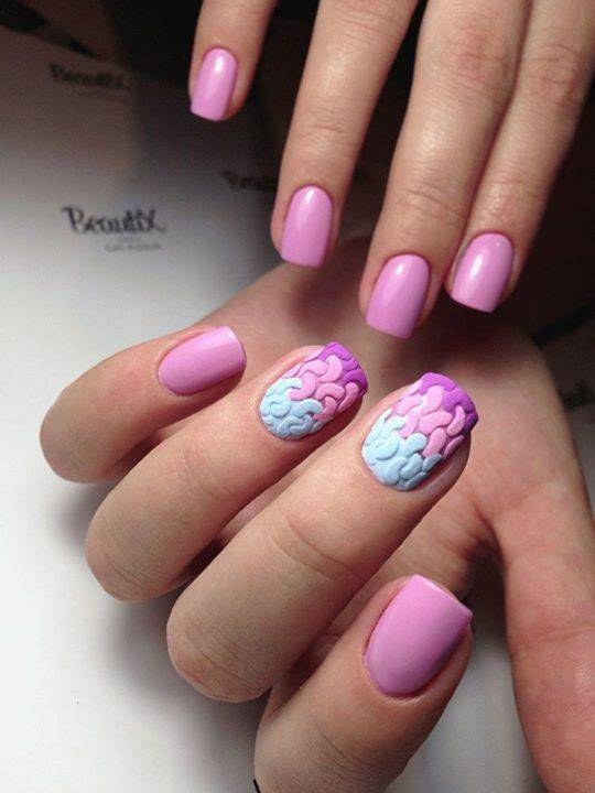 Это настоящее безумие в мире нейл-индустрии. Вы давно мечтали удивить подружек необычным маникюром? Тогда скорее выбирайте этот дизайн. С такими ногтями вы точно не останетесь без внимания.