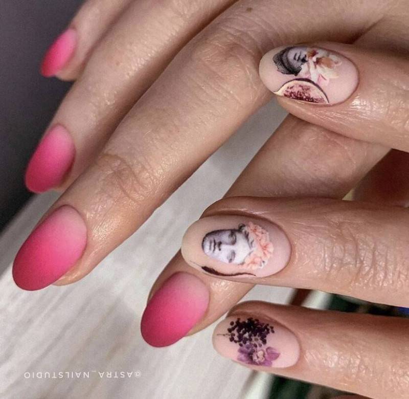 Его выбирают женщины каждый сезон, весна 2024 года не является исключением. Некоторые считают его скучным и слишком простым. Но если вы добавите золотые фрагменты, немного фольги, рисунки и прочие элементы декора, он заиграет совсем иначе. В этом сезоне нейл-мастера рекомендуют сделать белые матовые ногти с изображением лиц в черном цвете.