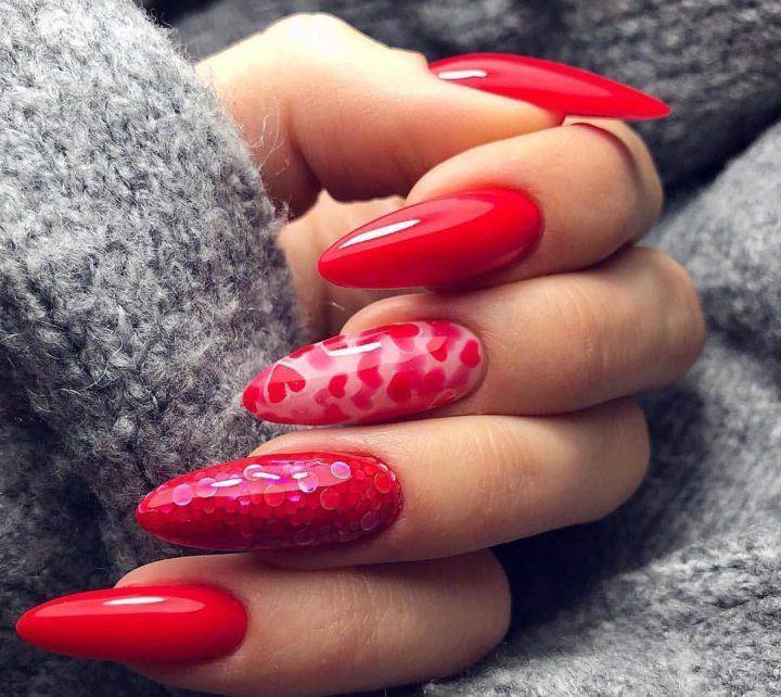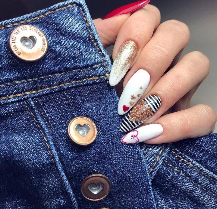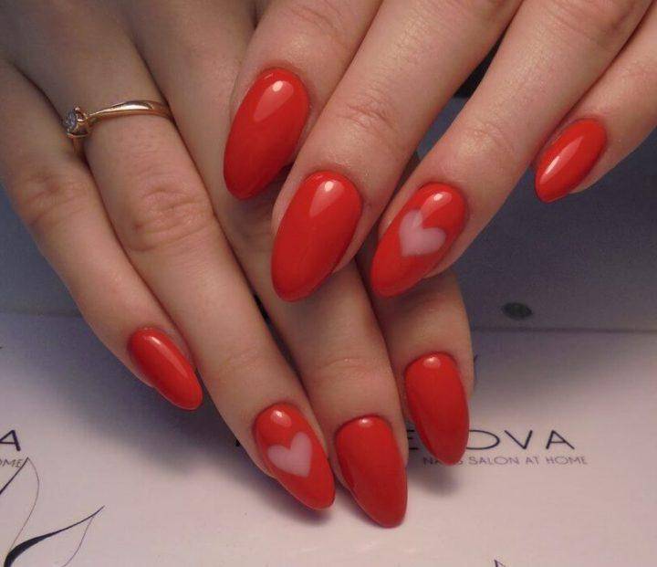 И здесь абсолютно не важно какая у вас форма ногтей. Принт сердечки подойдет к любой из них