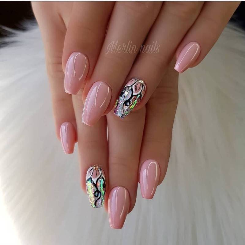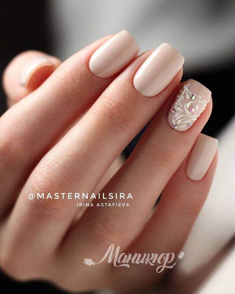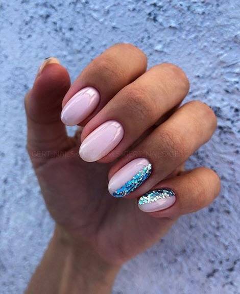 Если вы хотите разнообразить однотонный маникюр, добавьте в него несколько камушек, и он заиграет совсем по-другому. Или сделайте акцент в виде блесток на одном-двух ноготках. Чтобы ваш весенний маникюр сезона 2020 заиграл красивыми переливами на солнышке обязательно добавьте в него блестки или камушки.