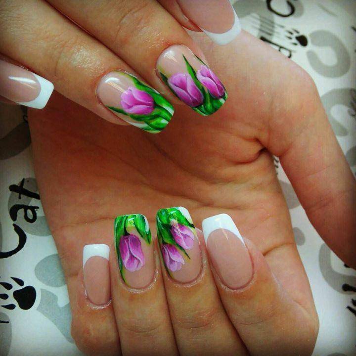 Этим дизайном можно восхищаться. Ведь это яркие цвета, которые не выйдут из моды никогда. Яркие френчи можно делать на каждом пальце по-разному. Ярко-красный в который можно добавить рисунок, например, арбуза или же надпись. Вы видели, как девушки покрывают обе руки с разными гель-лаками? Мне очень нравится такая идея. Сделайте себе разные пальцы на обеих руках, чем можно будет удивить ваших коллег по офису или вашу подругу. Для того чтобы преобразить ваш образ. Мастера вам предлагают множество полосок, блесток, нежных цветов. Как же не сказать о них? Прекрасные цветы, которые невероятно манят своим сладким ароматом в это прекрасное время года. Они бывают ранней весной или же в летнее время года.