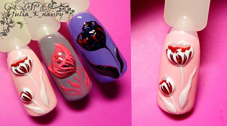 На ноготках появляются, как огромные, так и маленькие цветки, оригинальные веточки и чувственная листва, флористические завитки и другие дизайны, связанные с красотой природы.