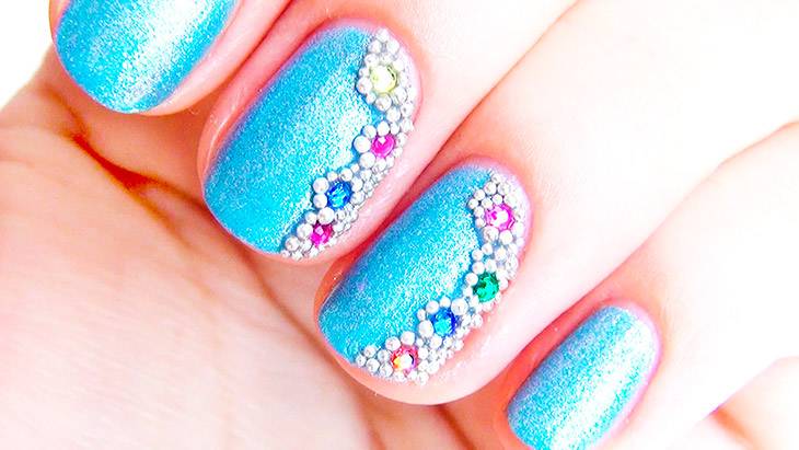 - Маникю с блестками и камнями