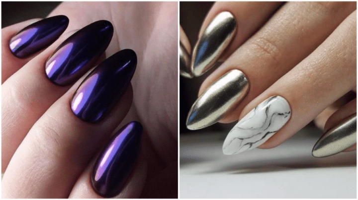 Иногда этот вид маникюра еще называют жидкий металл, капля металла, плавленое золото, ртуть.