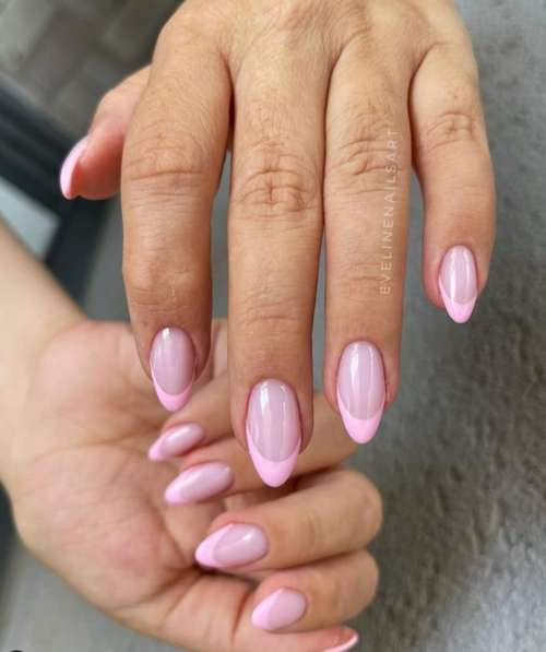 В дизайне ногтей часто применяются оттенки розового от фуксии до бледно-лилового. И френч — не исключение.