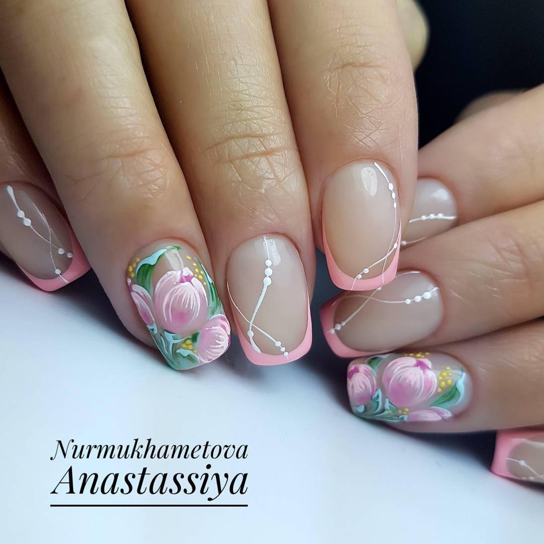 Френч маникюр с весенним рисунком