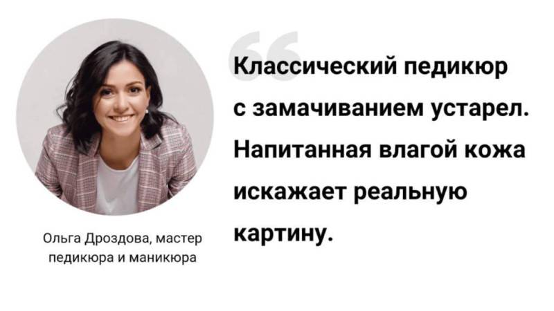 Сухой педикюр — это обработка стоп и ногтей на ногах без использования воды, но с применением обрезных инструментов или «жидких лезвий».