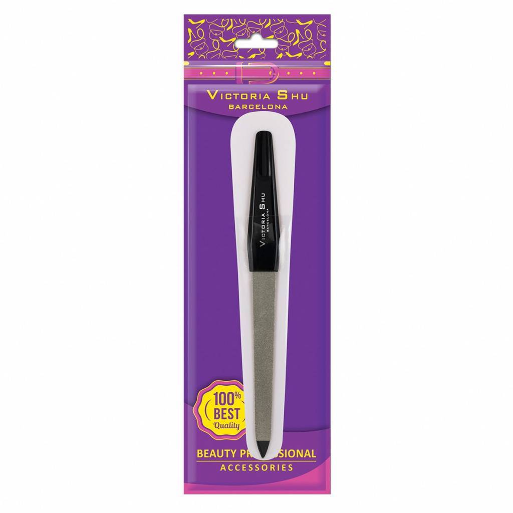 Две поверхности имеют разные степени зернистости: первая – более крупная для спиливания длины, вторая – для завершения процедуры. Ручка особой формы позволяет мастеру работать без дискомфорта и с удовольствием. Она выполнена из полированной стали, которая устойчива к ударам. На ней не образуется царапин и вмятин. Бренд гарантирует максимальное сохранение эксплуатационных характеристик и внешнего вида на длительное время использования.