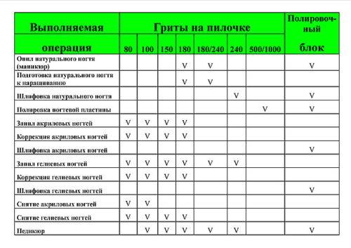 Правильно подобранный показатель обеспечивает быстрый процесс маникюра и безопасность. Значение указывается на боковой грани в гритах, которые подразумевают количество абразивных ячеек на 1 кв. см. Чем их число меньше, тем грубее основание.