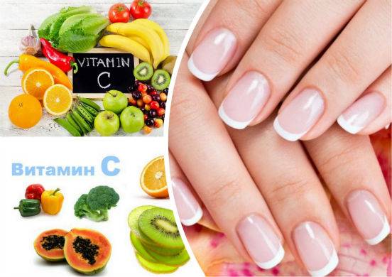 Аскорбиновая кислота полезна для усвоения витаминов А и Е, предотвращает истончение ноготков и способствует их укреплению.
