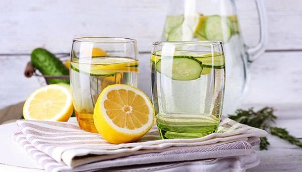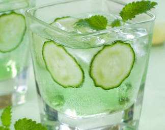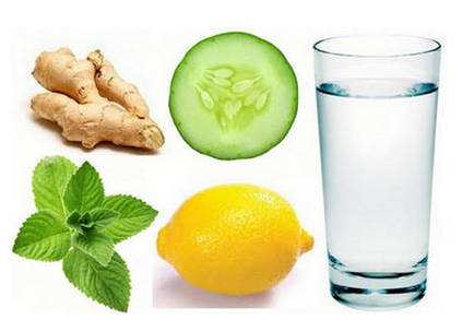 Огурец вымойте, очистите от кожуры и нарежьте тоненькими пластинками. Имбирь лучше всего натереть на мелкой тёрке, также предварительно очистив. Лимон следует нарезать тоненькими кружочками. Подготовленные ингредиенты следует залить водой и оставить напиток на ночь в холодильнике. Утром напиток будет готов.