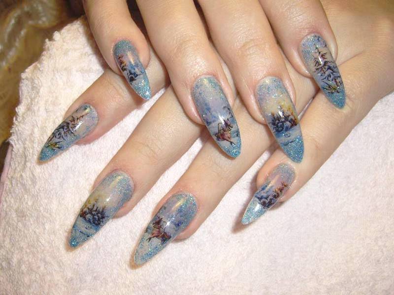 Фотодизайн отличает не столько технология нанесения на ногтевую поверхность, сколько отличное качество изображений. Завораживающе смотрятся разнообразные принты и даже портреты популярных людей. По желанию можно заказать для изготовления наклейки для оформления ногтей с собственной фотографией. Наверняка такой фотодекор не оставит невпечатленным никого. Наклеивание пленок не отличается легкостью, однако результат превзойдет все ожидания.