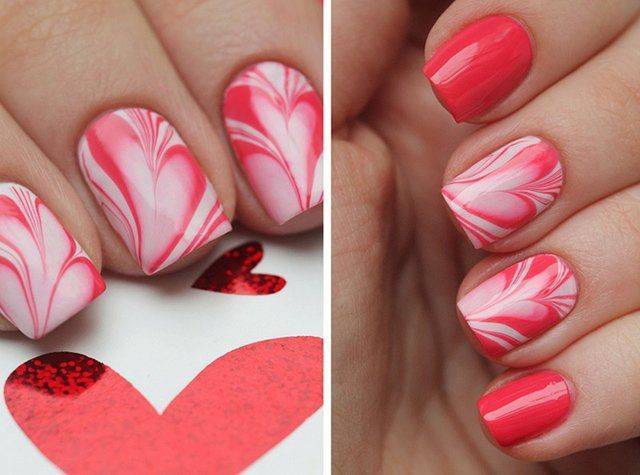 Водный маникюр “Сердечки” Water Marble manicure “the Hearts”