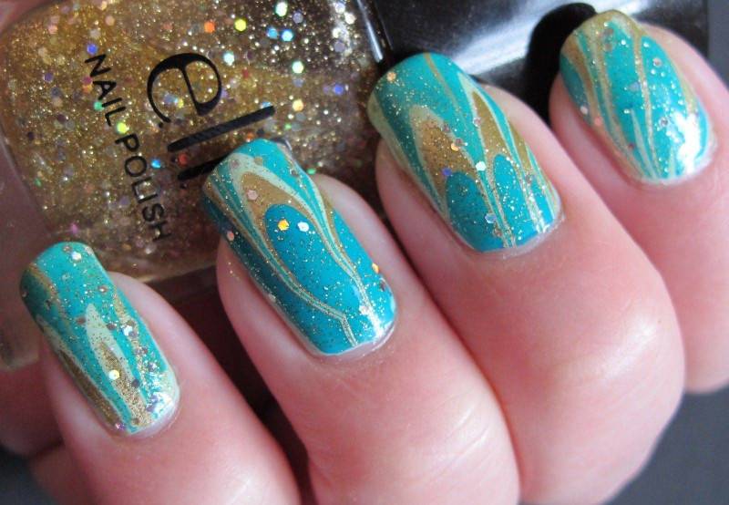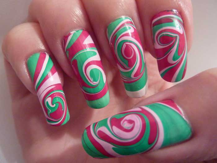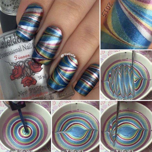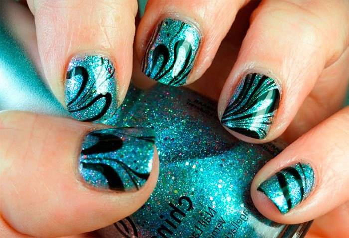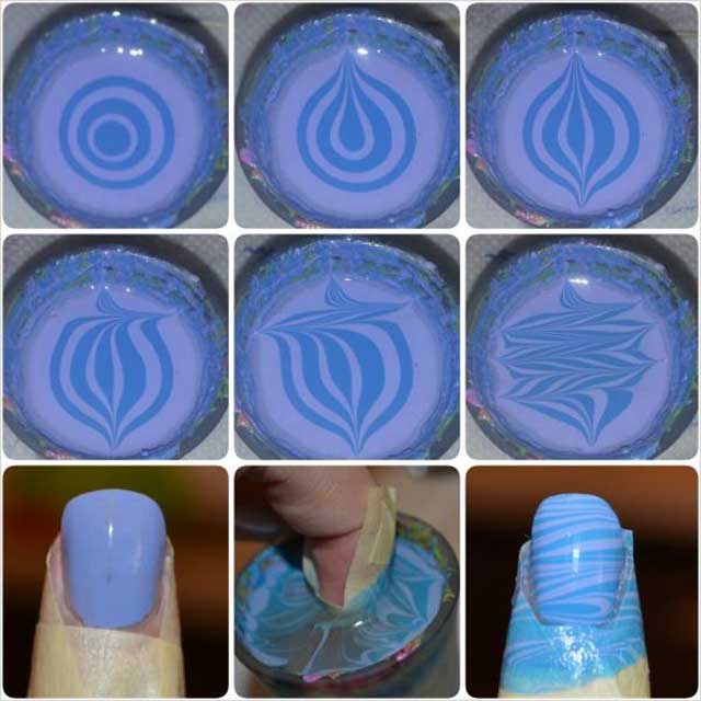 Он выглядит фантастично и захватывающе, к тому же при помощи него можно красиво оформить свои ногти. Эффект разводов, спиралей и необычных полосок производится при помощи растворения лака в воде.