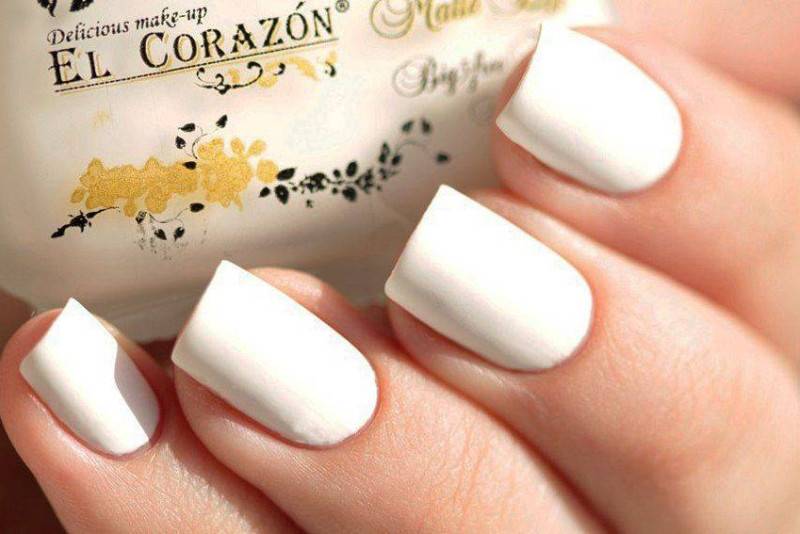 Водный маникюр в домашних условиях | Традиционно покрываем первым этапом ногти базой для ногтей. Наталья использовала №426 Diamond Force – Алмазный укрепитель с наночастицами из серии Perfect Nails EL Corazon (идеальные ногти). Наносим белый лак матовый для ногтейEL Corazon Matte Effect №125 и ждем его полного высыхания. Сильнопигментированный лак Matte Effect №125 идеален в качестве подложки для водного маникюра. |