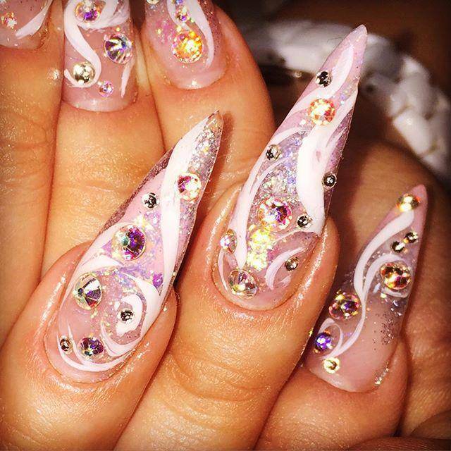 Многие женщины предпочитают именно этот способ художественного декорирования ногтей, ведь он допускает использование разнообразных рисунков, узоров, и даже лепку. Под защитным бесцветным лаком можно: