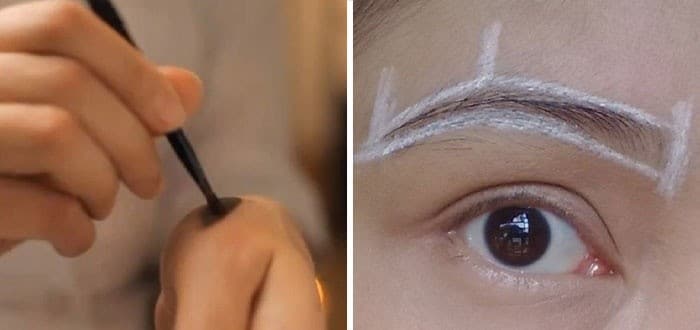 Кожу вокруг бровей очищают, дезинфицируют, рисуют контур будущих бровей при помощи карандаша.
