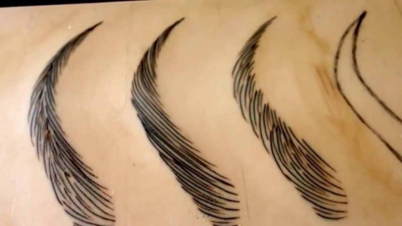 Европейский. Штрихи делаются параллельно друг другу и расположены на равной дистанции. Подбирается несколько оттенков, для создания естественной иллюзии. Штрихи направлены вверх с загнутыми кончиками к низу. Способ более затратный, поскольку коррекция проводится раз в два месяца. Восточный. Штрихи прорисовываются разной длины, расстояние между ними отличается, некоторые пересекаются. Волоски направлены под разными углами. Эти приемы помогают придать бровям естественный вид