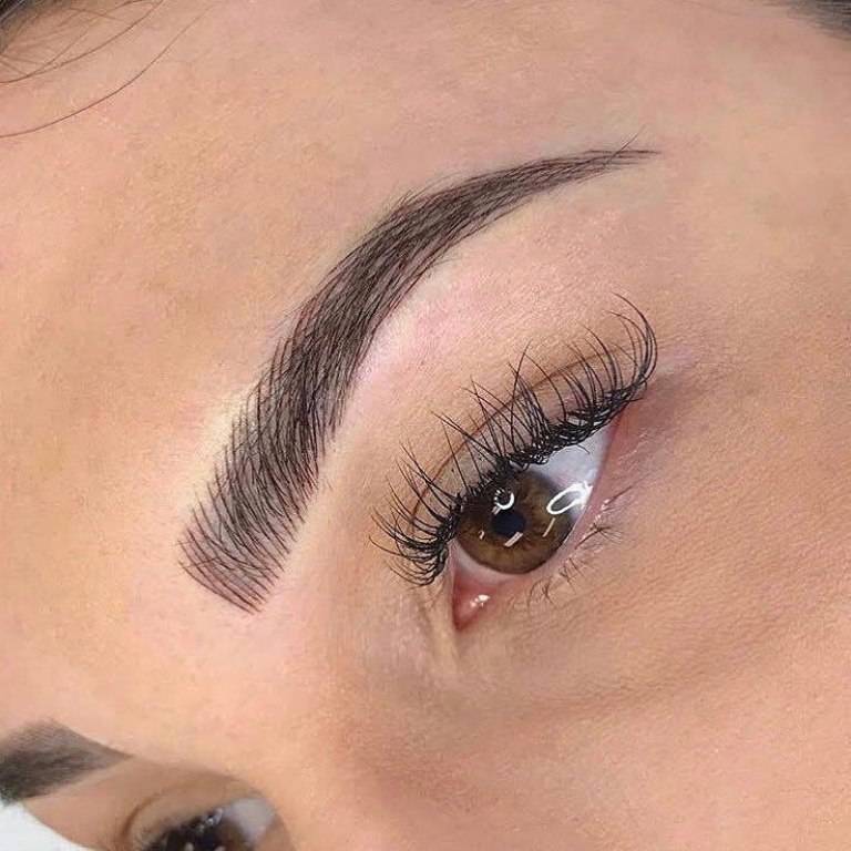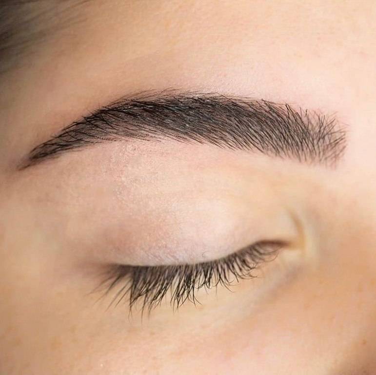 Такие брови выглядят очень натурально, а результат весьма порадует вас. Но, к сожалению, не стоит его выполнять девушкам, которые имеют слишком светлые или «лысые» брови. Потому как результат получится слишком неестественным.