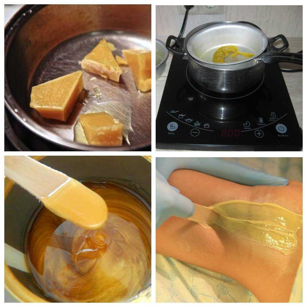 Все ингредиенты помещаются в кастрюльку и разогреваются на водяной бане до однородной консистенции. Использовать для депиляции можно после остывания до 40-45 градусов.