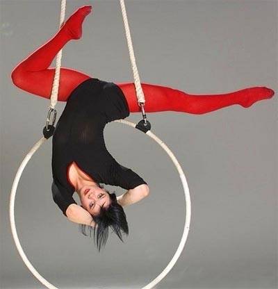 Air hoop (Aerial Hoop), hanging in the air, can rotate, or be fixed in one position. Women and girls who wanted to go in for sports, but did not find anything interesting enough for themselves, should consider this a sport, because it is very original and effective for the rapid formation of a sports figure, as it develops different groups muscles.
