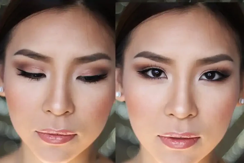 - Азиатский глаз – это всегда глаз правильной миндалевидной формы. Для того, что приблизить европейский разрез к такой форме, необходимо проработать нижнее веко. Лучший прием для достижения поставленной цели – высветление слизистой нижнего века.