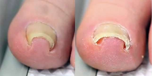 6. Эти действия повторяются до полного удаления поражённого участка ногтя.