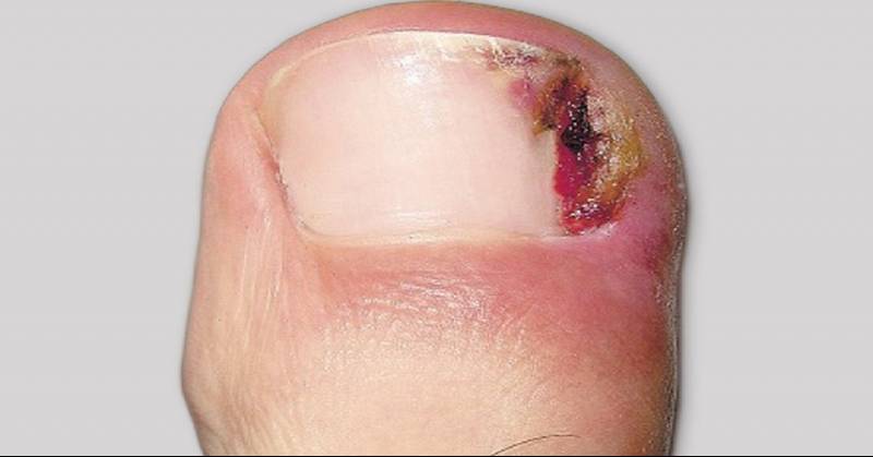 Затягивание болезни приводит к развитию инфекций, что, безусловно, усугубляет ситуацию. Открытые длительное время незаживающие раны – это отличная среда для размножения бактерий. Инфицированная рана заживает медленно, организм же пытается залечить пораженный участок, в результате на месте врастания ногтя образуется ярко-красная грануляционная ткань. Если не начать лечение или начать неправильное лечение, грануляция становится плотной, фаланга меняет форму, решить проблему консервативными методами становится невозможно. Кроме того, вероятно развитие воспаления мягких тканей не только пальцев, но и всей стопы, которое в случае бездействия может распространиться на кости и привести к остеомиелиту.