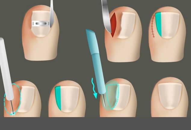Если воспалительный процесс зашел слишком далеко, то хирург прибегнет к удалению части вросшего ногтя. Такая операция проводится под местным обезболиванием, поэтому пациент ничего не почувствует в процессе кроме легкого дискомфорта.