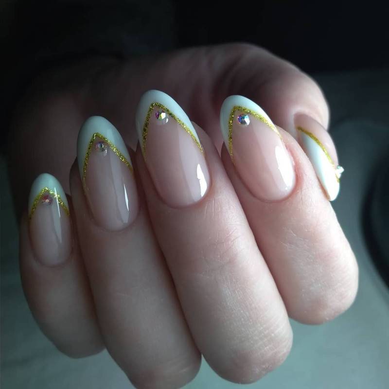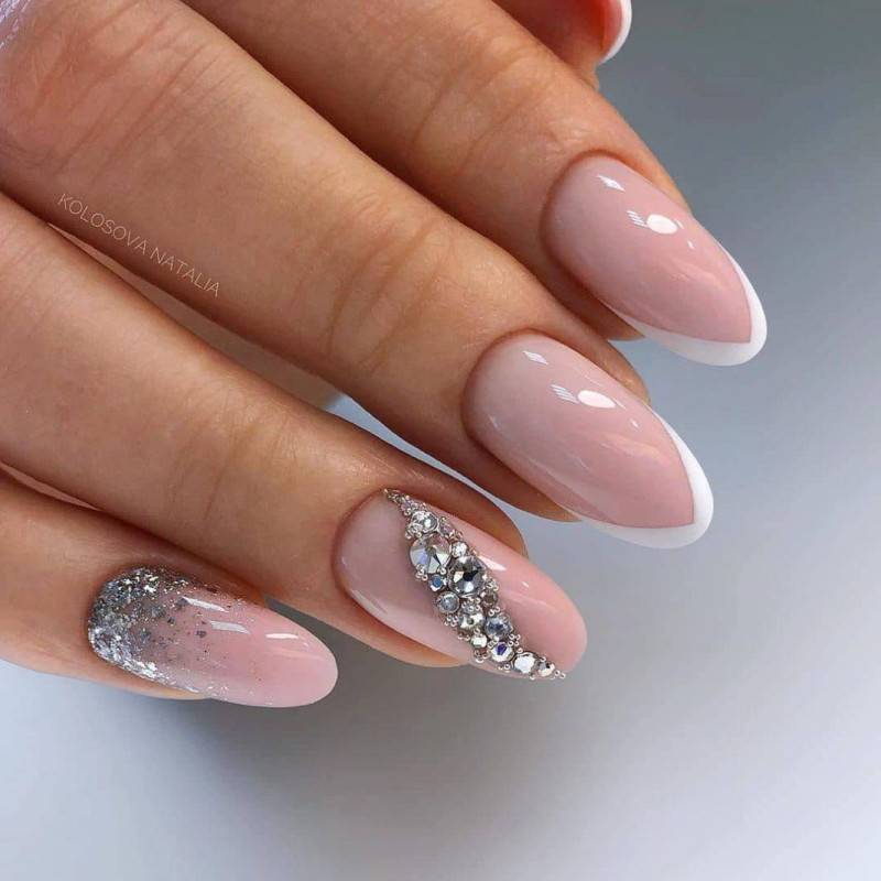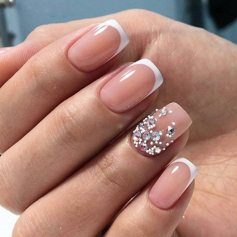 #1 Французский маникюр с блестками и стразами