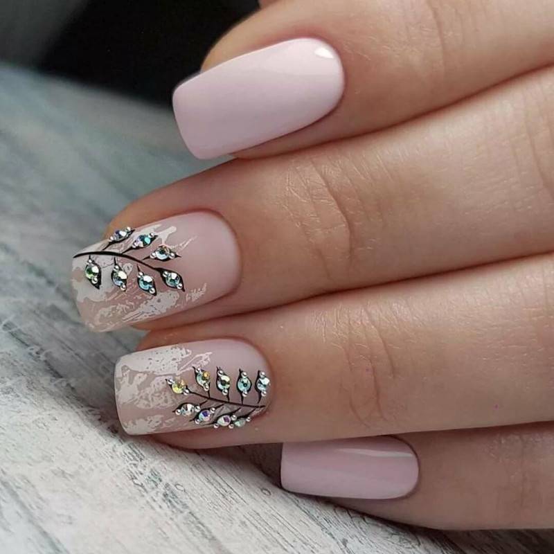 nail art : нежный маникюр со стразами