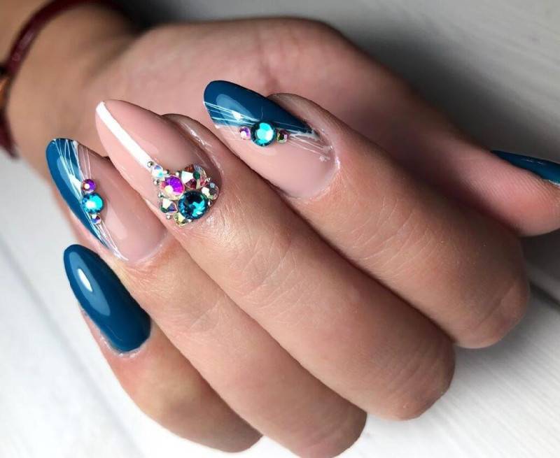 Еще один активный вариант дизайн ногтей, который можно сочетать со стразами