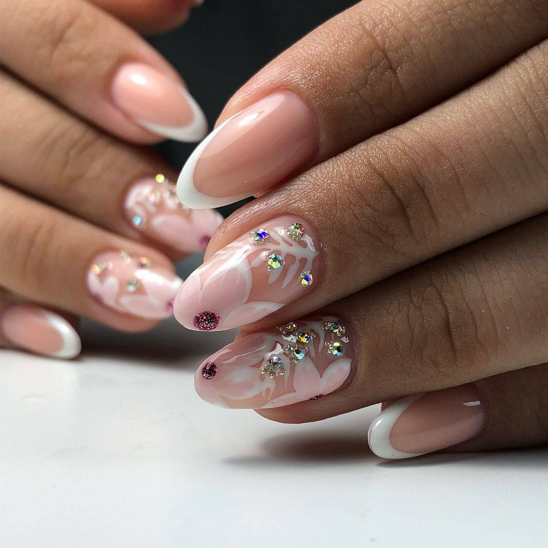 nail art : нежный маникюр со стразами