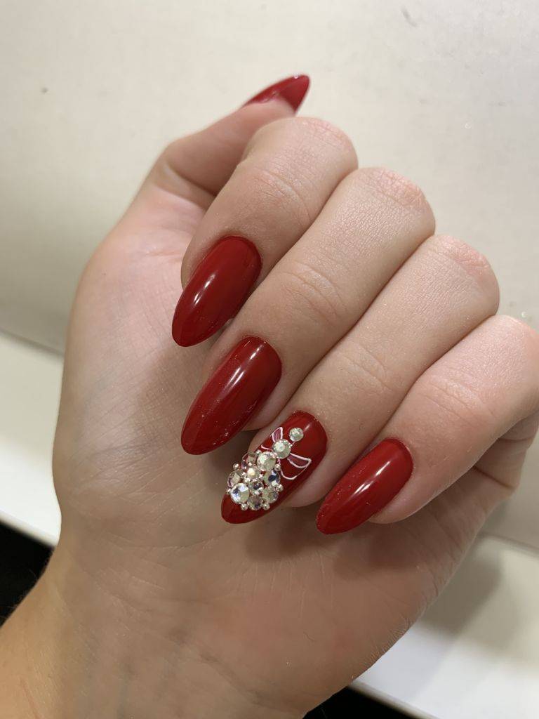 Вариант ниже не совсем подходит для массивной, тяжёлой инкрустации, но также часто применяется для крепления маленьких стразинок с плоским дном. Сегодня на пике популярности яркие цвета лака, такие как красный и розовый. Они отлично сочетаются с любой одеждой и подчеркивают женственность