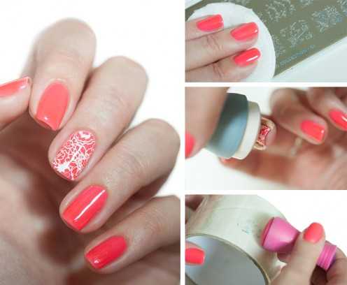 Нанесение штампа требует практики, поэтому потренируйтесь на обычной бумаге, а потом пробуйте переносить узор на ногти.