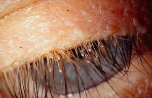 По окончании трапезы вредитель впрыскивает в поврежденное место секрет, препятствующий свертыванию крови. В результате чего укусы вшей долгое время не заживают. Ниже можно увидеть, как выглядят вши на ресницах на фото.