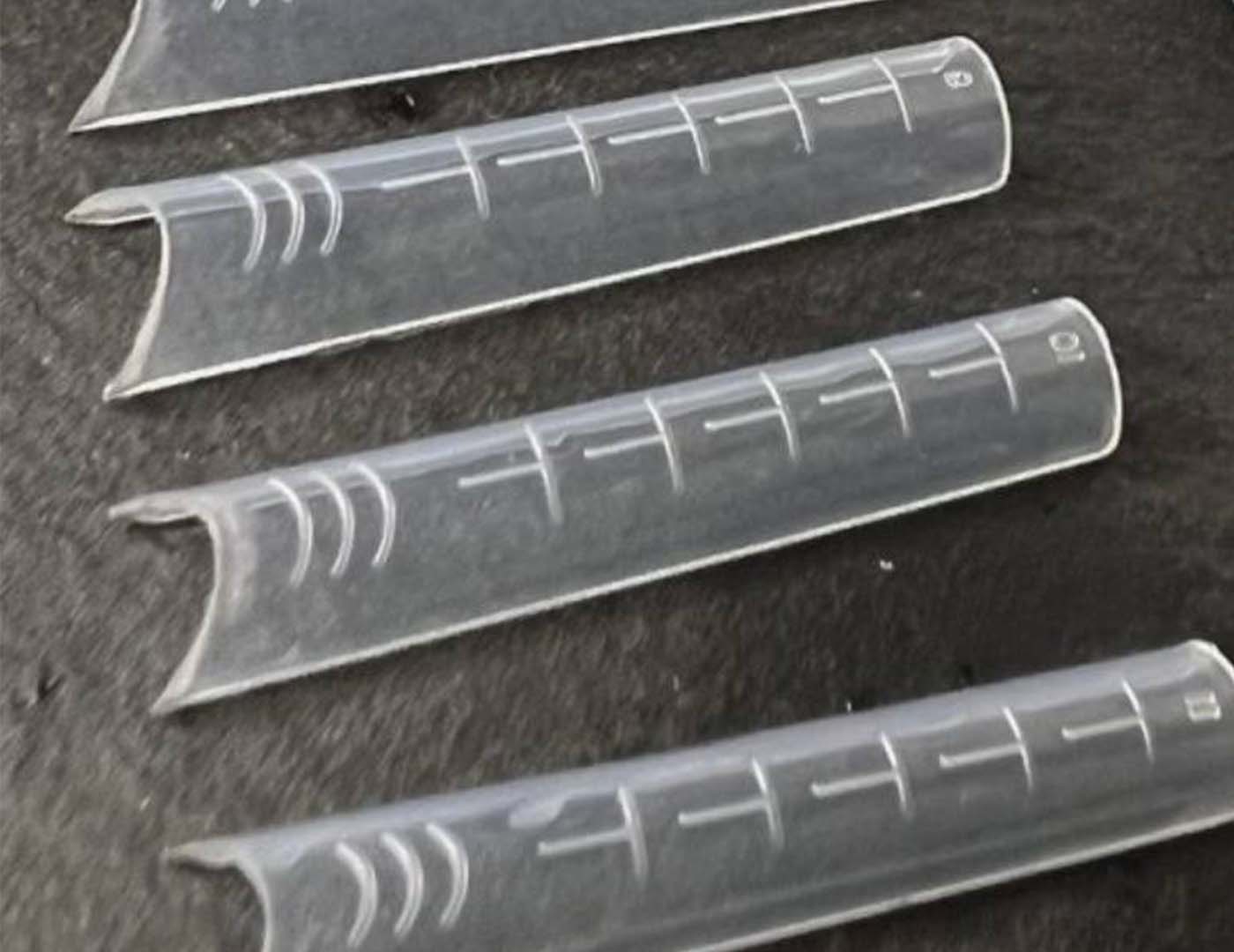 Толщина. Чем она меньше, тем более естественно будет смотреться пластина. И если выбираете накладку без изгиба, то часть, контактирующая с собственным ногтем, должна быть максимально тонкой. Обычно их такими и выпускают – тонкая контактная часть и более толстый свободный край.