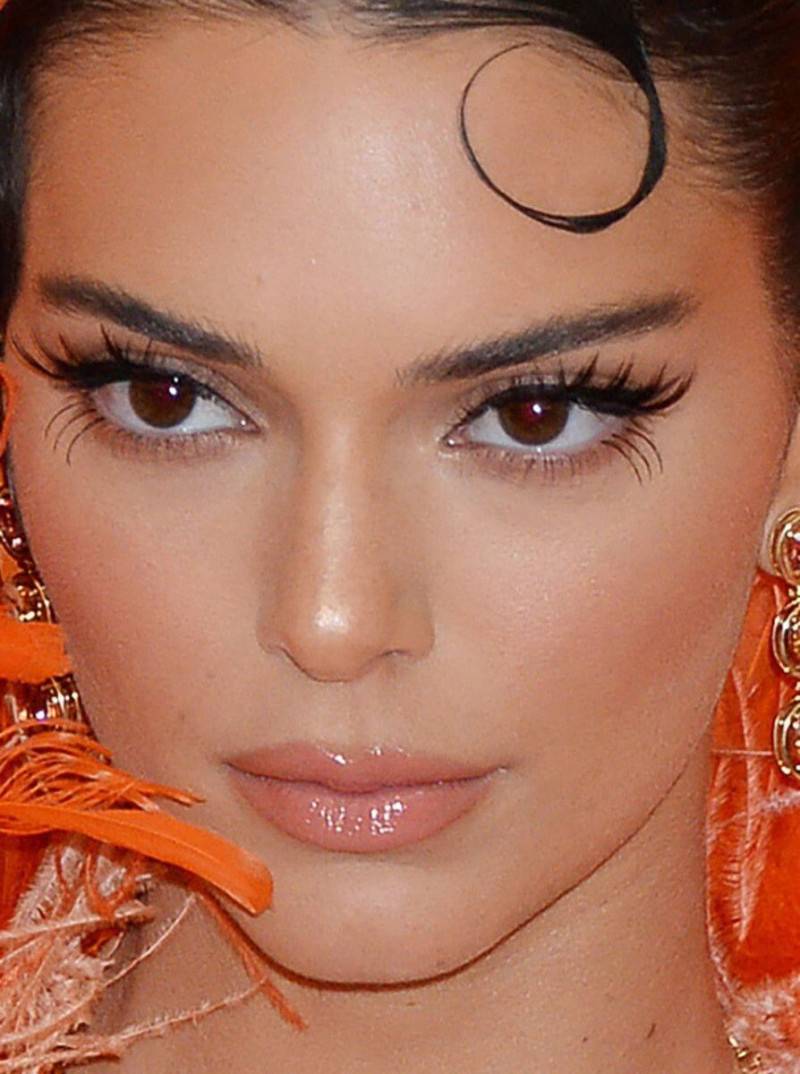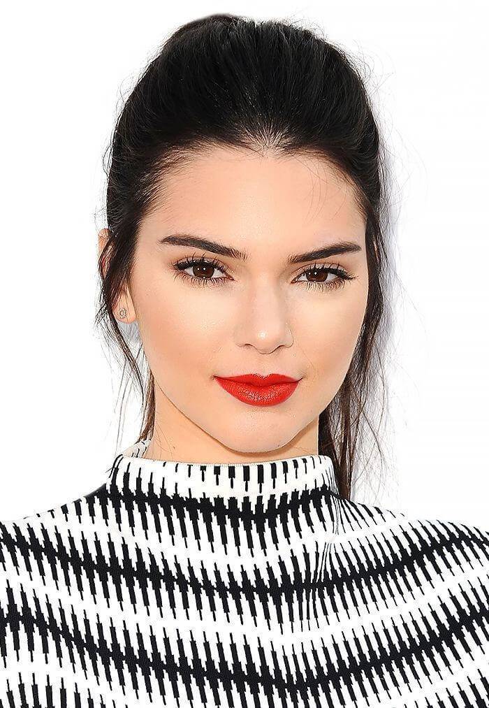 Кендалл не использует плотные слои теней, румян или тонального крема — лишь легкий макияж с яркими акцентами. Чаще всего это аккуратная стрелка, которая подчеркивает верхнюю линию роста ресниц, либо же растушеванная линия.