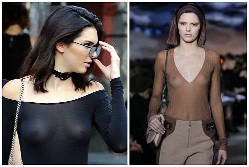 - Соски. Как признается сама Кендалл Дженнер, особое место в числе ее любимых фотосессий занимают провокационные, особенно – с минимальным количеством или отсутствием одежды. Участие в съемках подобного типа съемках побудило модель к корррекции формы и размеров ареол груди. У модели есть пирсинг на сосках, который она не стесняется демонстрировать в полупрозрачной одежде.