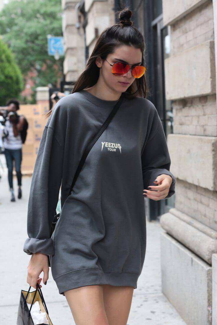 Наряду с элегантными пальто, супермодель любит надевать объемные вещи. Пуховики, свитеры и пайты оверсайз Кендалл носит с присущей ей легкостью и изяществом.